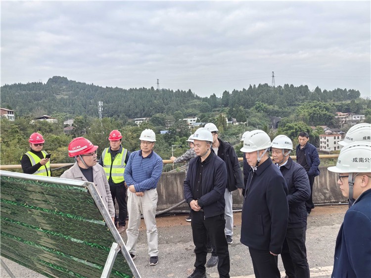 11月4日,四川省交通運輸廳建管處副處長王文初及川高公司黨委委員、副總經理蘭富安一行赴成南擴容項目開展建設督導工作,成南公司黨委副書記、總經理萬忠金陪同。
