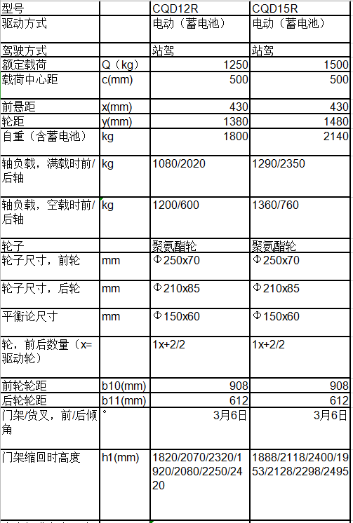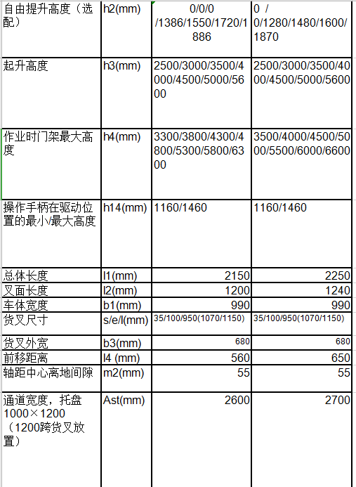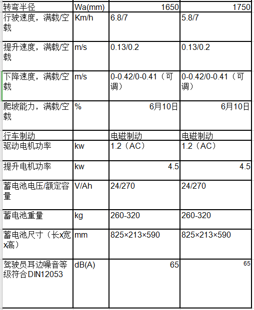 ■ 內(nèi)置充電器、全自由提升、貨叉?zhèn)纫?,可作為客戶的選配,門架起升高度為2.5米至5.6米,承載能力由1噸到1.25噸;