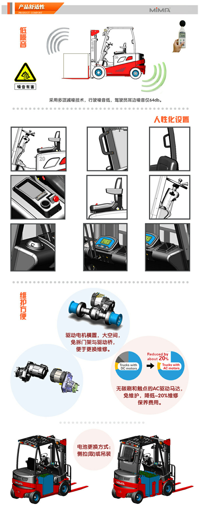 優(yōu)良的產(chǎn)品性能 1 依照歐洲標(biāo)準(zhǔn)ENSIP EN-ISO 5353中關(guān)于SIP要求設(shè)計的叉車駕駛室,讓操作更舒適; 2 多功能LCD數(shù)字控制儀表具有運行時間顯示、故障代碼顯示、蓄電池顯示、低電壓警示閃