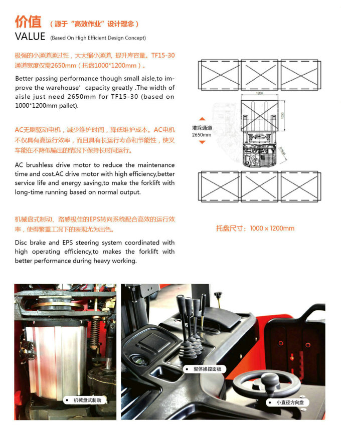 3. 全系標配電動助力轉(zhuǎn)向,采用小直徑方向盤,轉(zhuǎn)向力輕,使駕駛者的操作靈活性能大大提高。同時相對于液壓轉(zhuǎn)向而言,能夠有效的降低能耗和提升起升速度。